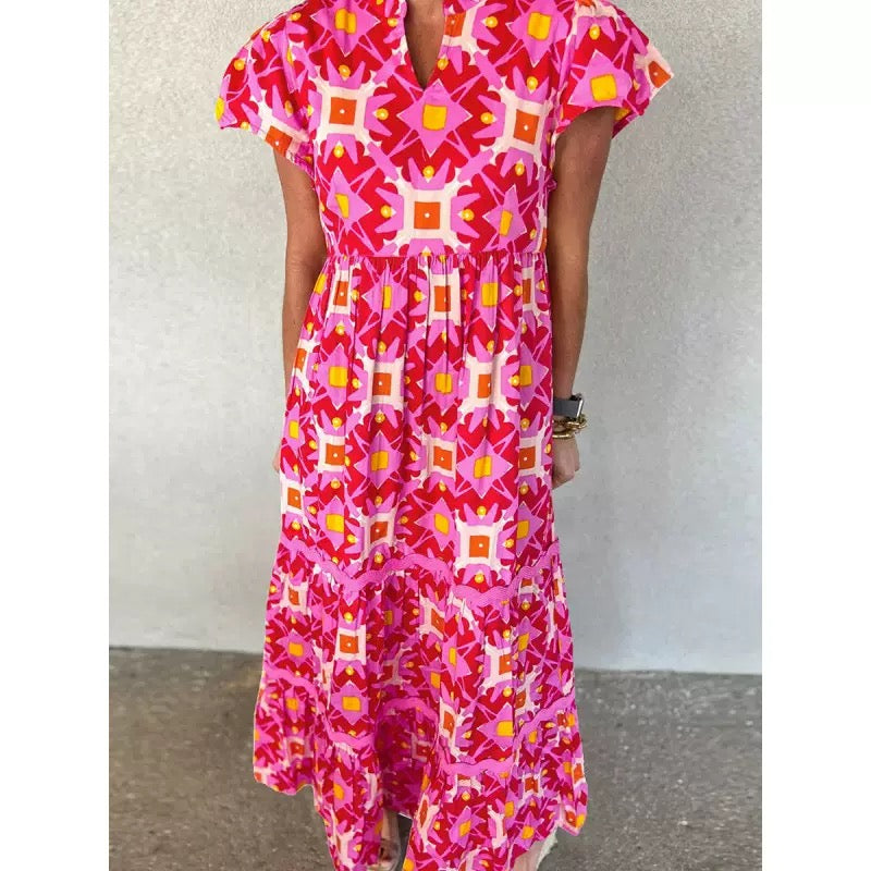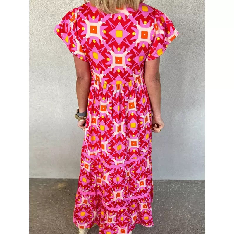 Modisches kleid mit bedrucktem schnürschlitz