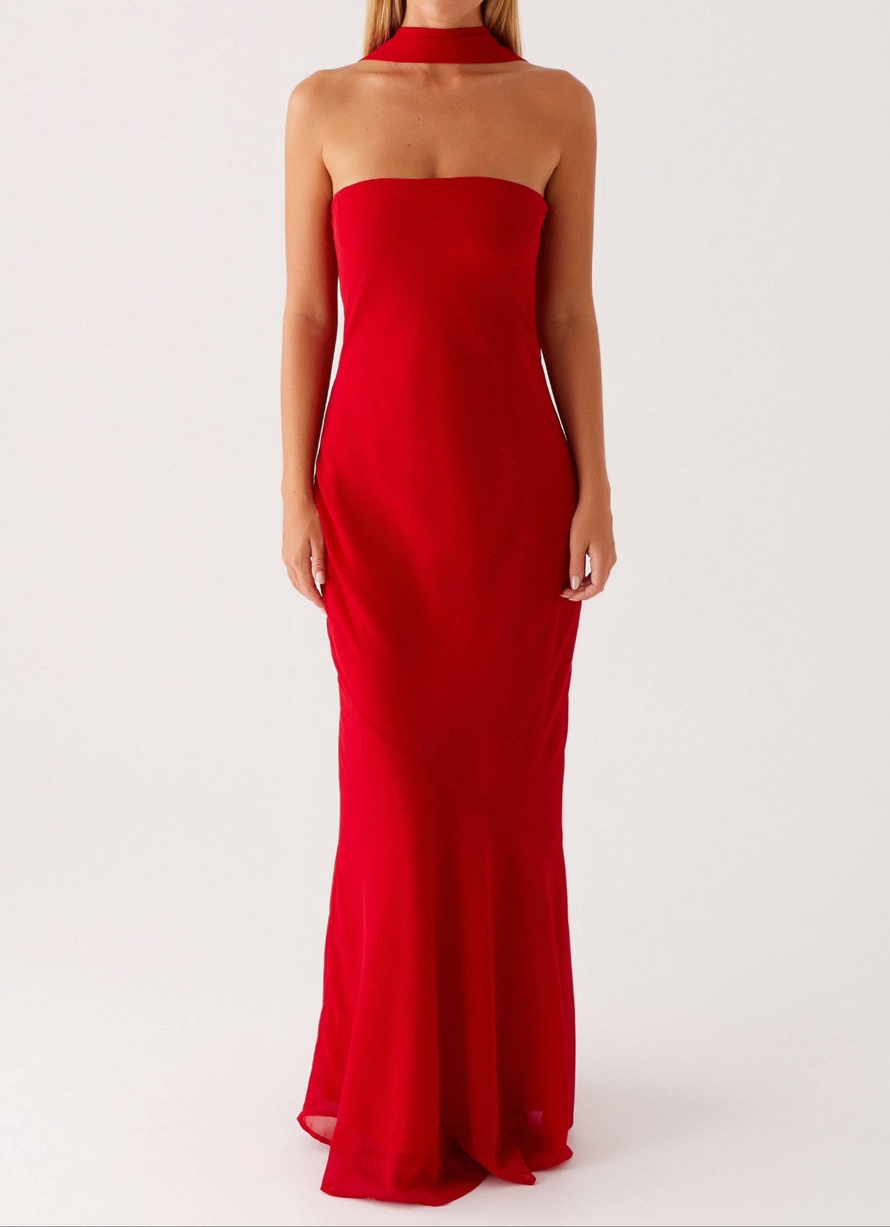 Verkörpere zeitlose Eleganz in diesem edlen, trägerlosen Maxikleid, das sich bei jedem Schritt anmutig mitbewegt. Die fließende Silhouette und die raffinierten Details schaffen einen mühelos schicken Look – ideal für Gartenpartys, Hochzeiten oder romantische Abende.