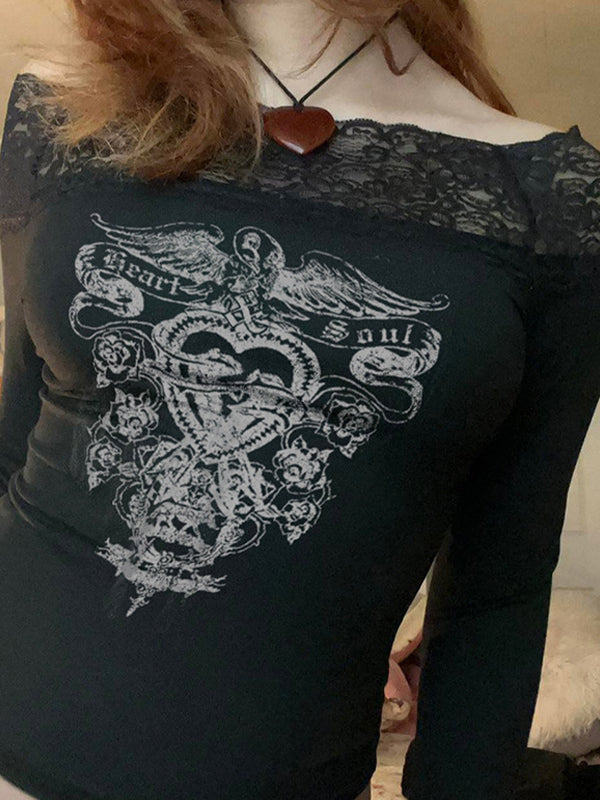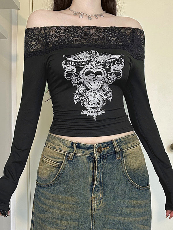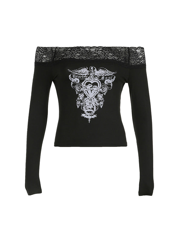 Retro Printed Lace Patchwork Long Sleeve/Retro bedruckte Spitze Patchwork Langarm