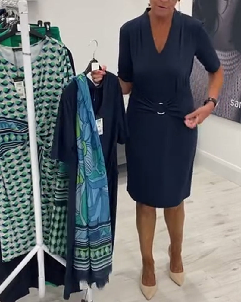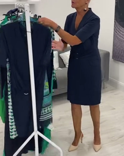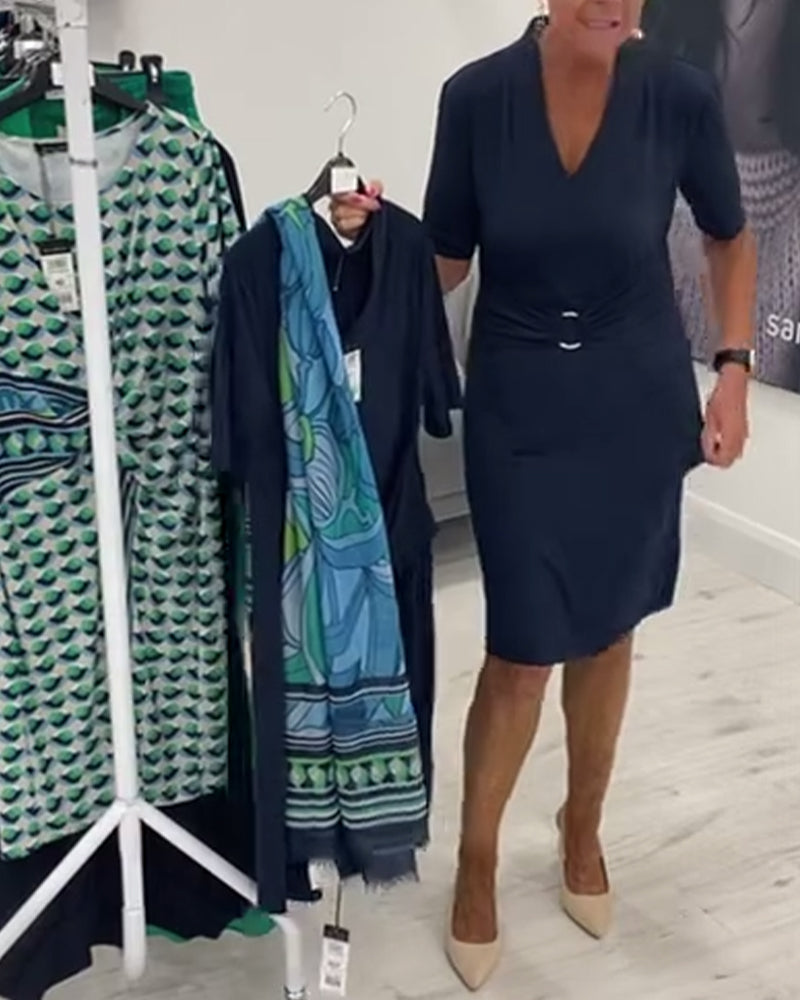 Schlichtes, einfarbiges, elegantes Kleid mit V-Ausschnitt