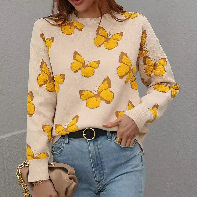 Schmetterlingsmuster Lässiger Pullover