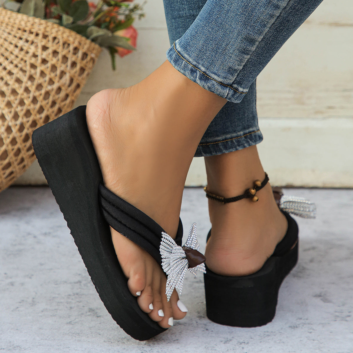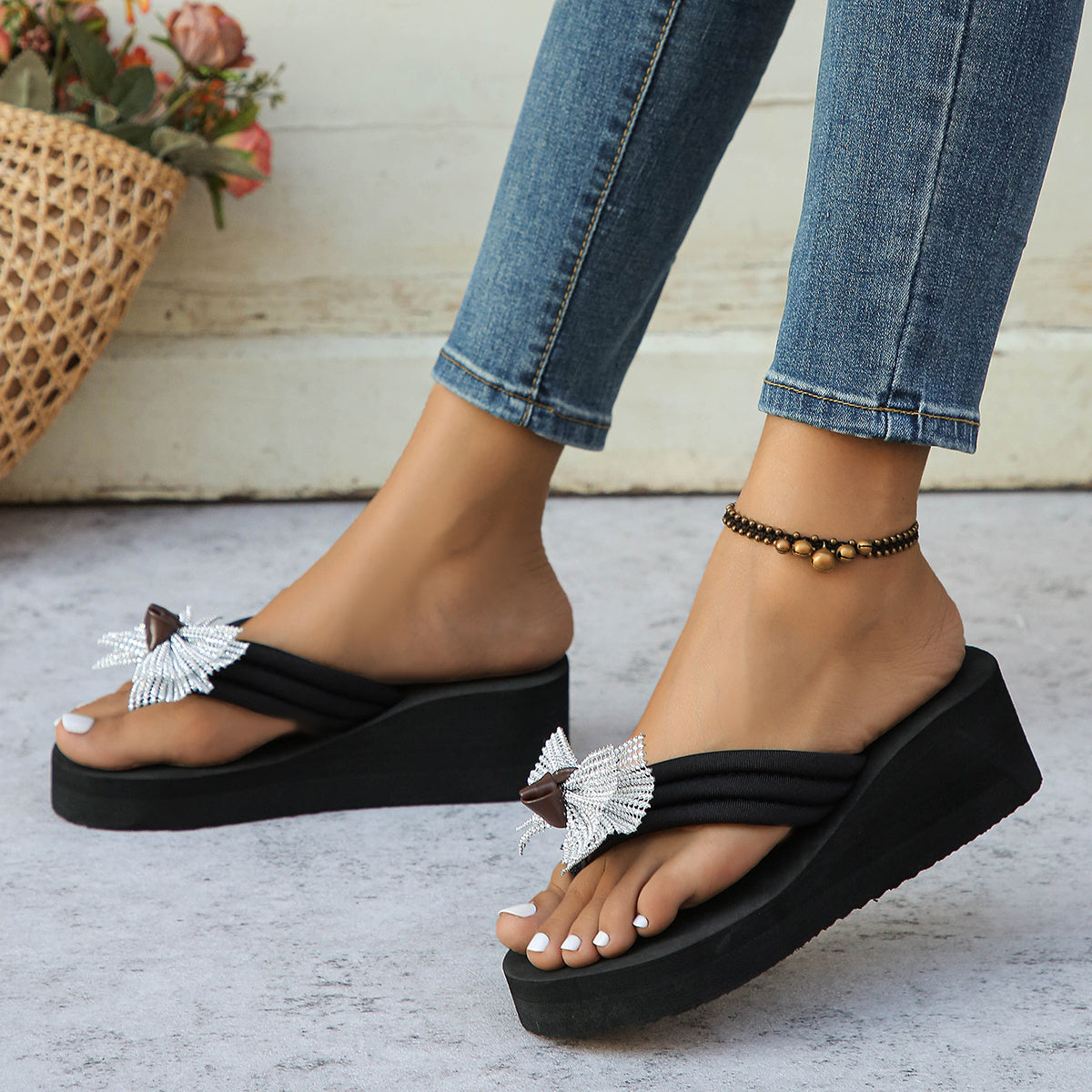 Bringe Glamour in deinen Alltag mit unseren schwarzen Schleifen-Flip-Flops, die entworfen wurden, um dir ein Gefühl von Eleganz und Komfort zu verleihen. Perfekt für die stilbewusste Frau, die Wert auf Detail und Bequemlichkeit legt, sind diese Flip-Flops ideal für besondere Anlässe und entspannte Tage.