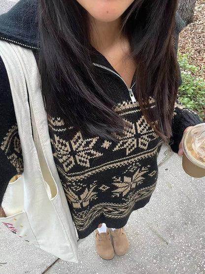 Vielseitiges Styling: Ob du dich für einen Casual-Ausflug stylst oder es dir zu Hause gemütlich machst, dieser Jacquard-Pullover passt perfekt zu Jeans, Röcken oder Leggings. Sein vintage-inspiriertes Design verleiht jedem Outfit eine Note von Eleganz.