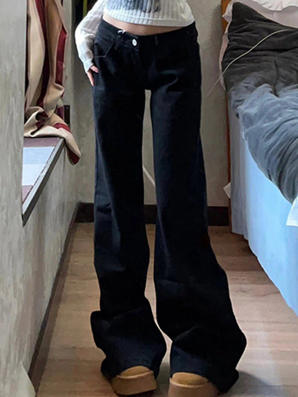 Schwarze Y2k Low Waist Weitbeinig Flare Jeans