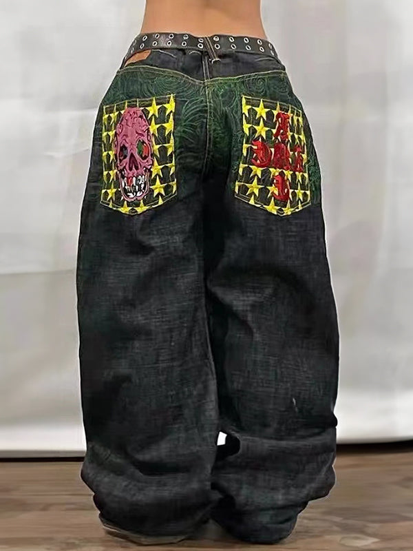 Schwarze YK2 Amerikanische High Street Boyfriend Jeans