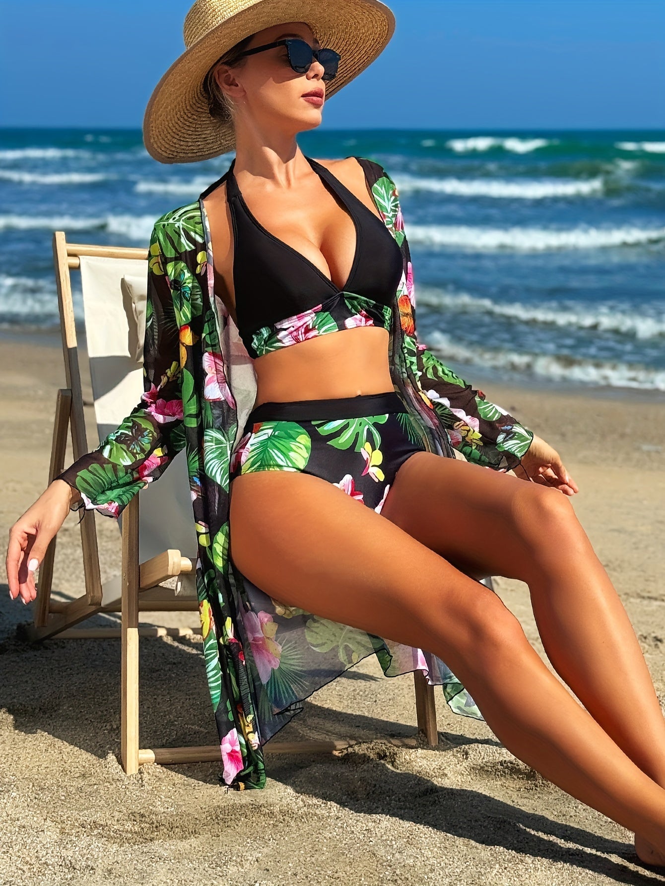 Exotisches Design mit leuchtenden Farben: Der weiche und dennoch strapazierfähige Stoff sorgt für ein angenehmes Tragegefühl, selbst an langen Tagen am Strand. Das florale Muster und die lebhaften Farben bieten eine auffällige und fröhliche Optik, während die verstellbaren Träger und der tiefe Ausschnitt für eine schmeichelhafte Passform sorgen. Dieses Badeanzug-Set ist ideal, um einen stilvollen und dennoch entspannten Look zu kreieren, der Ihre Persönlichkeit und Ihren individuellen Stil unterstreicht.