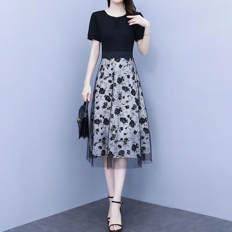 Das Paket beinhaltet: 1 * Schwarzes Kurzarm-Patchwork-Mesh-Kleid für Damen