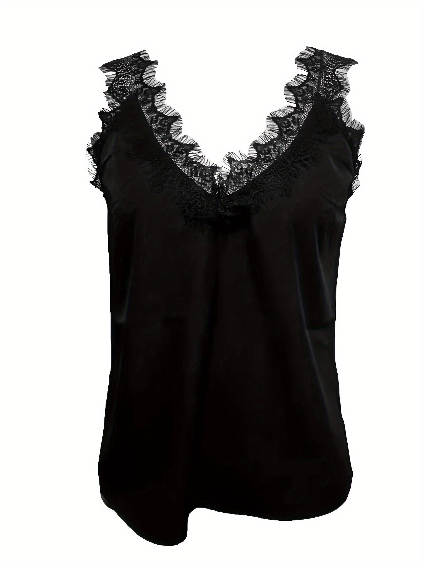 Verführerischer Komfort und raffinierter Stil: Das hochwertige, seidige Material sorgt für ein luxuriöses Tragegefühl und schmiegt sich perfekt an Ihre Silhouette an. Die zarten Spitzenverzierungen entlang des tiefen V-Ausschnitts und der Träger verleihen dem Top eine sinnliche und zugleich elegante Note. Der fließende Schnitt sorgt für eine schmeichelhafte Passform, die Ihre Figur optimal zur Geltung bringt und Ihnen ein selbstbewusstes Auftreten verleiht.