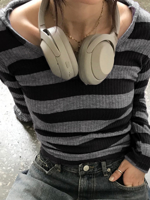 Schwarzes Vintage Slim Fit Vielseitiges V-Aussch Langarm Shirt