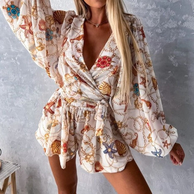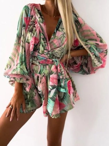 Dieses verführerische Sommerkleid mit auffälligem Muster und lockerem Schnitt ist perfekt für warme Tage am Strand oder entspannte Ausflüge. Die weiten Ärmel und der Wickelschnitt bieten nicht nur Komfort, sondern zaubern auch eine feminine Silhouette. Perfekt, um modisch und bequem durch den Sommer zu kommen.