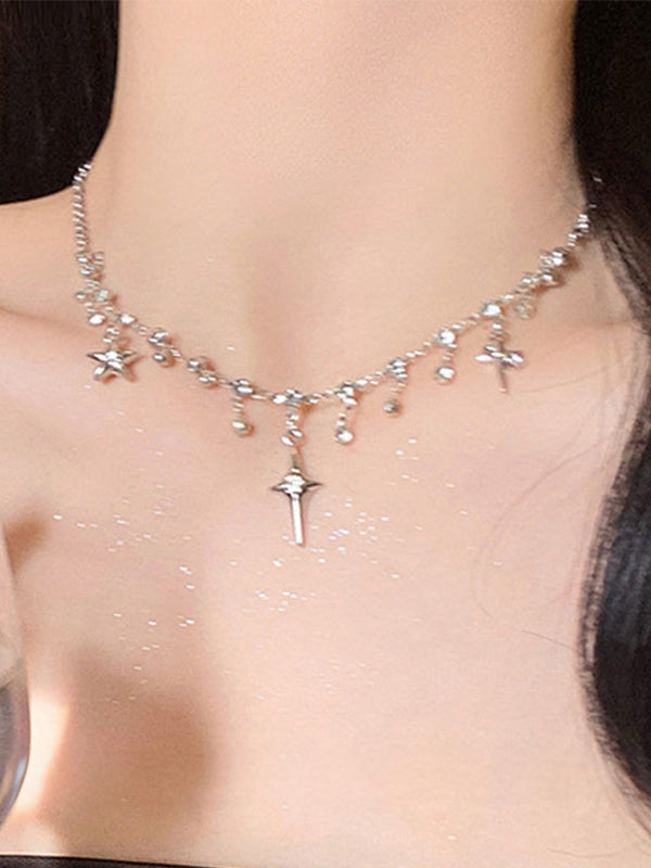 Silbernes Vintage Stern Wassertropfen Rhinestone Halsband
