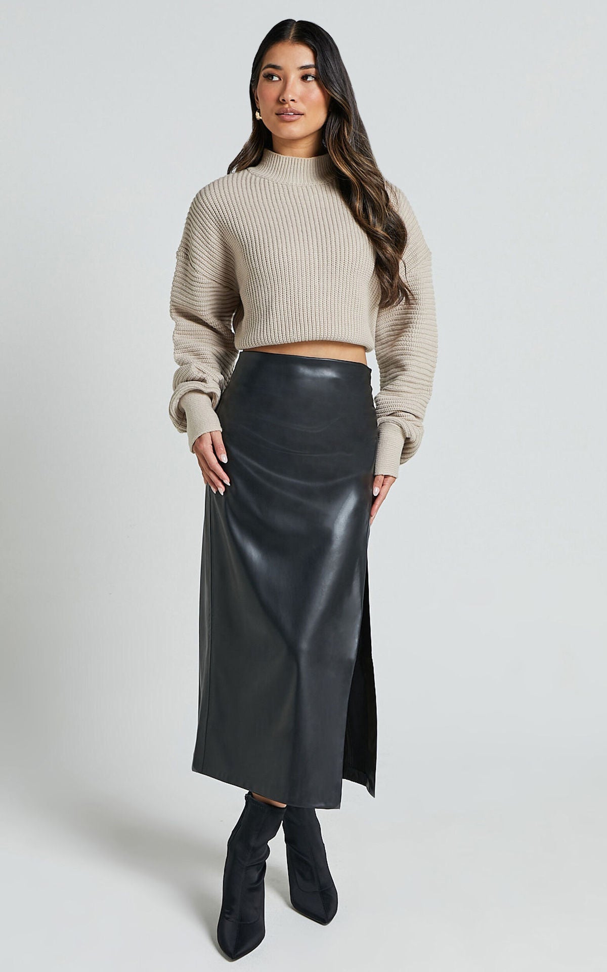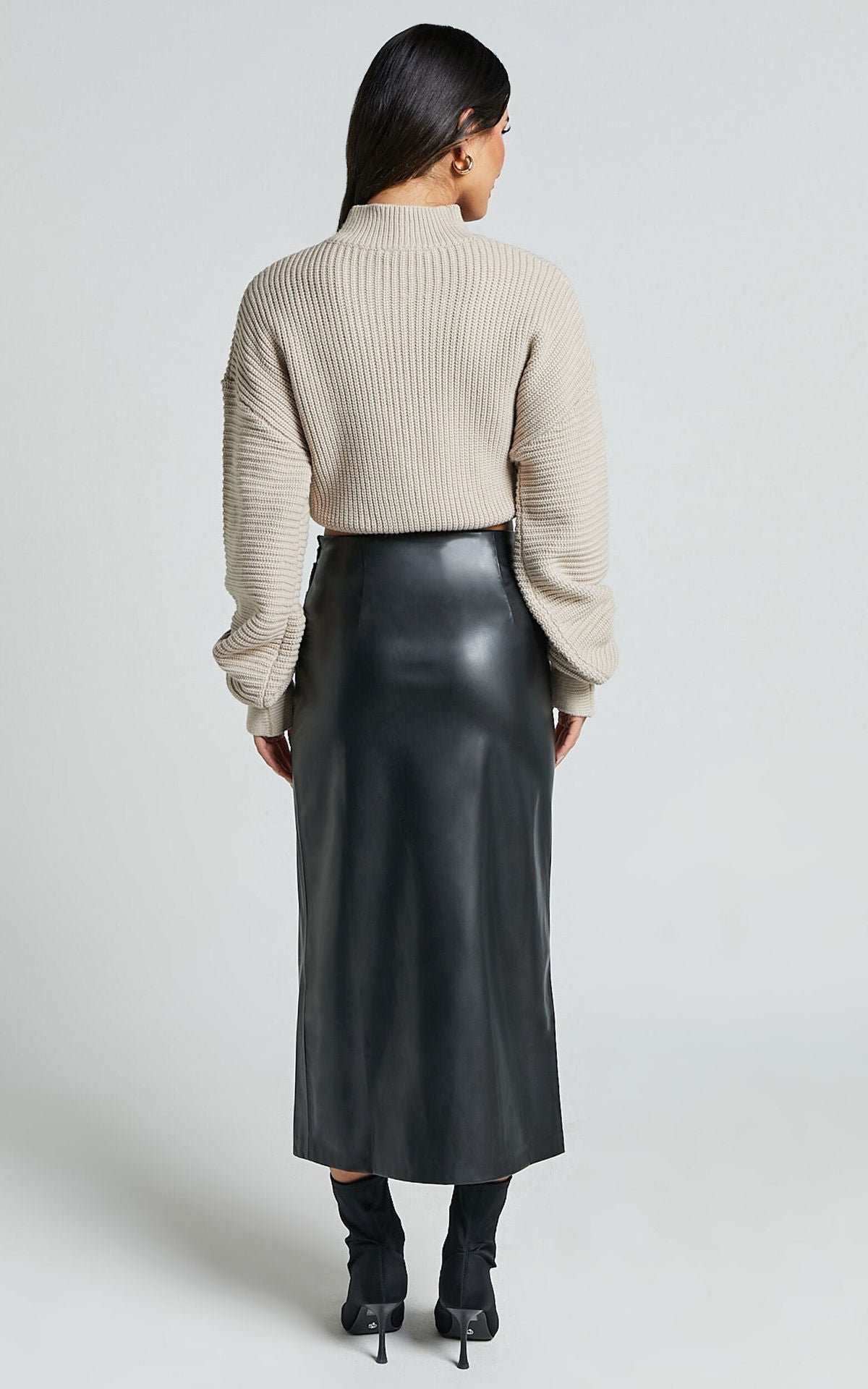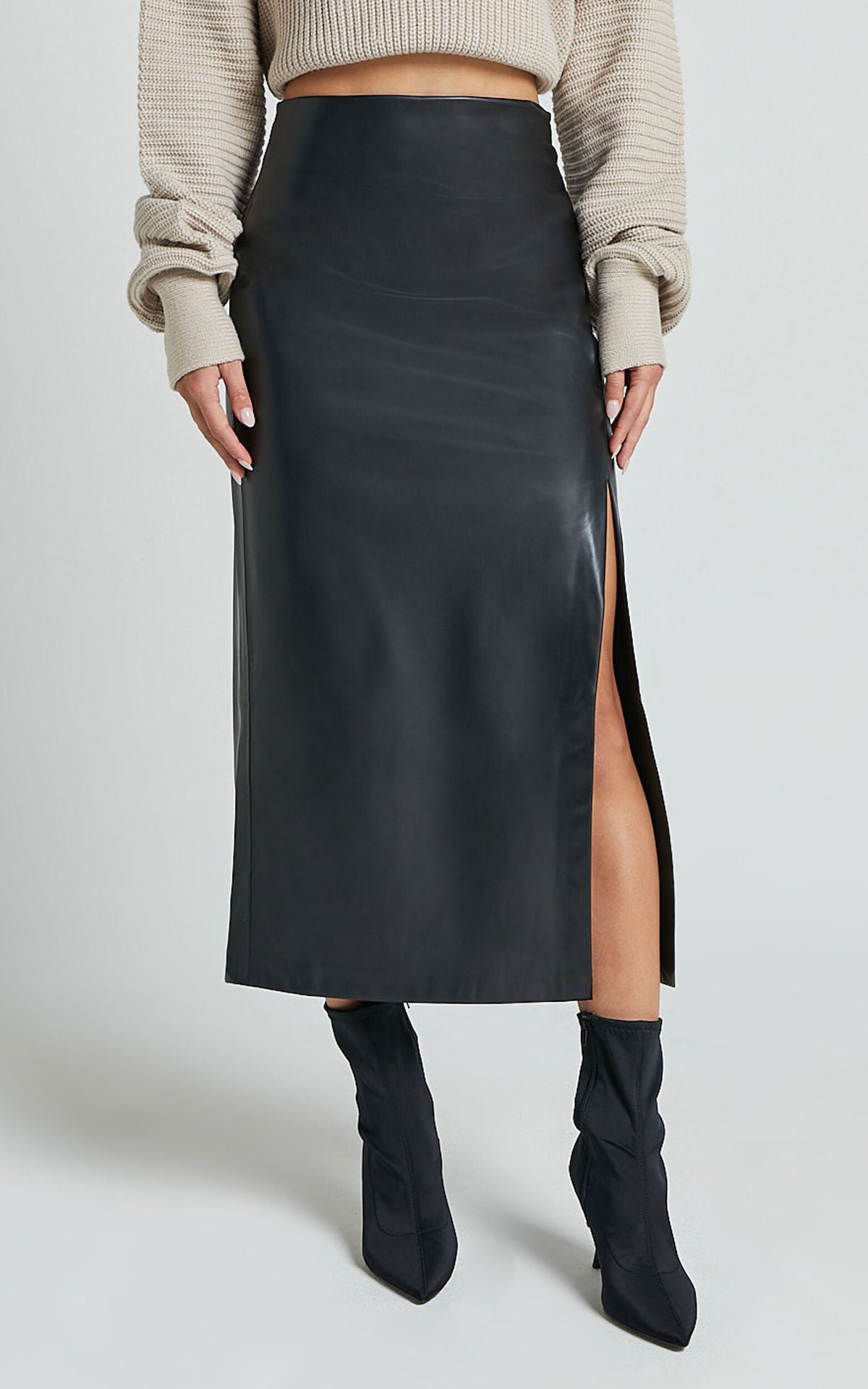 This slit high waist zipper PU leather skirt is a stylish and versatile addition to your wardrobe. The high waist design creates a slimming effect, while the slit adds a touch of edginess. The zipper adds functionality, making it easy to put on and take off. Made of PU leather, this skirt is durable and easy to care for. Perfect for any occasion, whether dressed up or down.