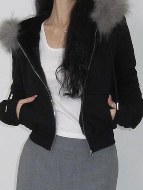 Vintage Einfarbige Jacke mit Buchstabenstickerei und Fellapplikationen