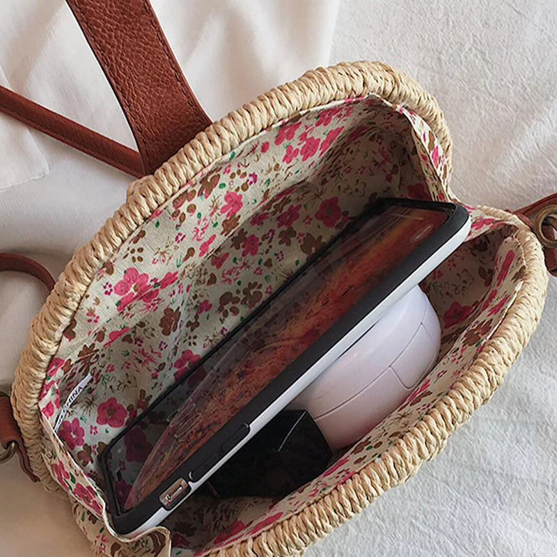 Vintage Halbrunde Strohtasche