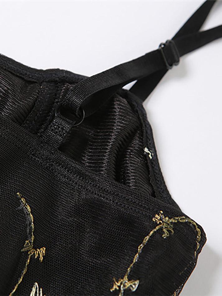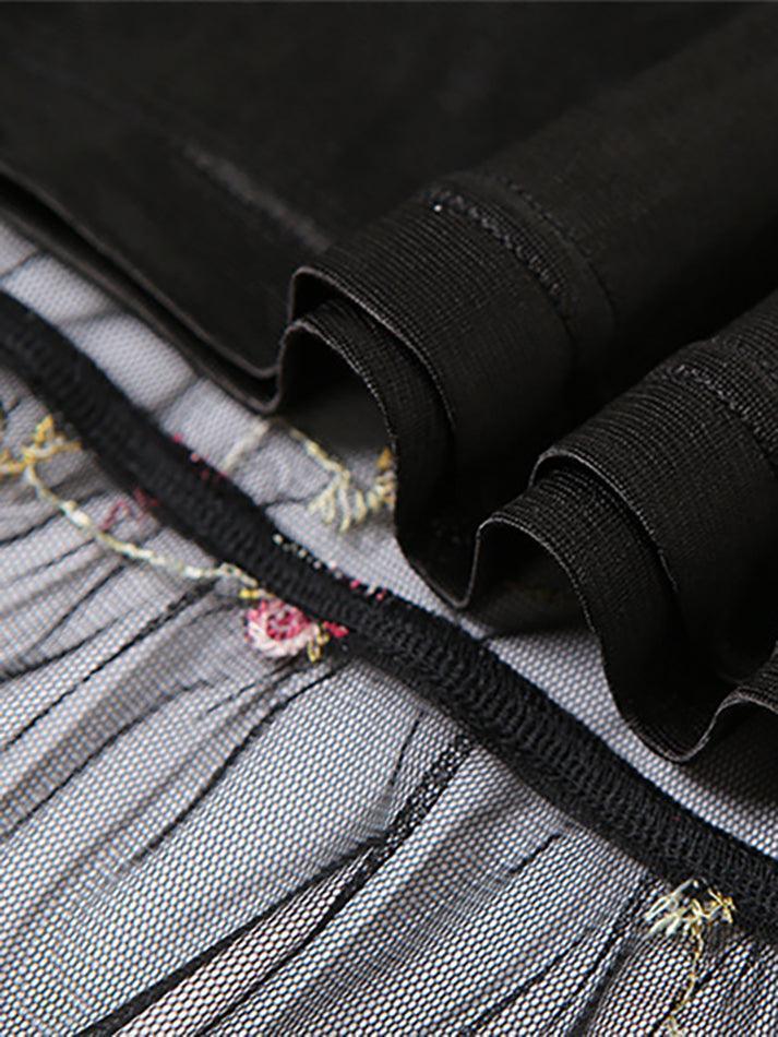 Vintage V Ausschnitt Mesh Paneled Blumen Minikleid