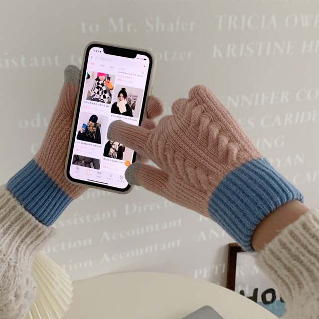 Warme Kabelstrick-Handschuhe