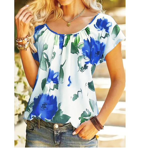 Farbenfroh und charmant, die Bluse "Fiona" in Weiß mit einem lebhaften Blumenmuster bringt eine frische Brise in jede Garderobe. Dieses Top zeichnet sich durch seine leichte und fließende Passform aus, die es ideal für warme Tage macht.