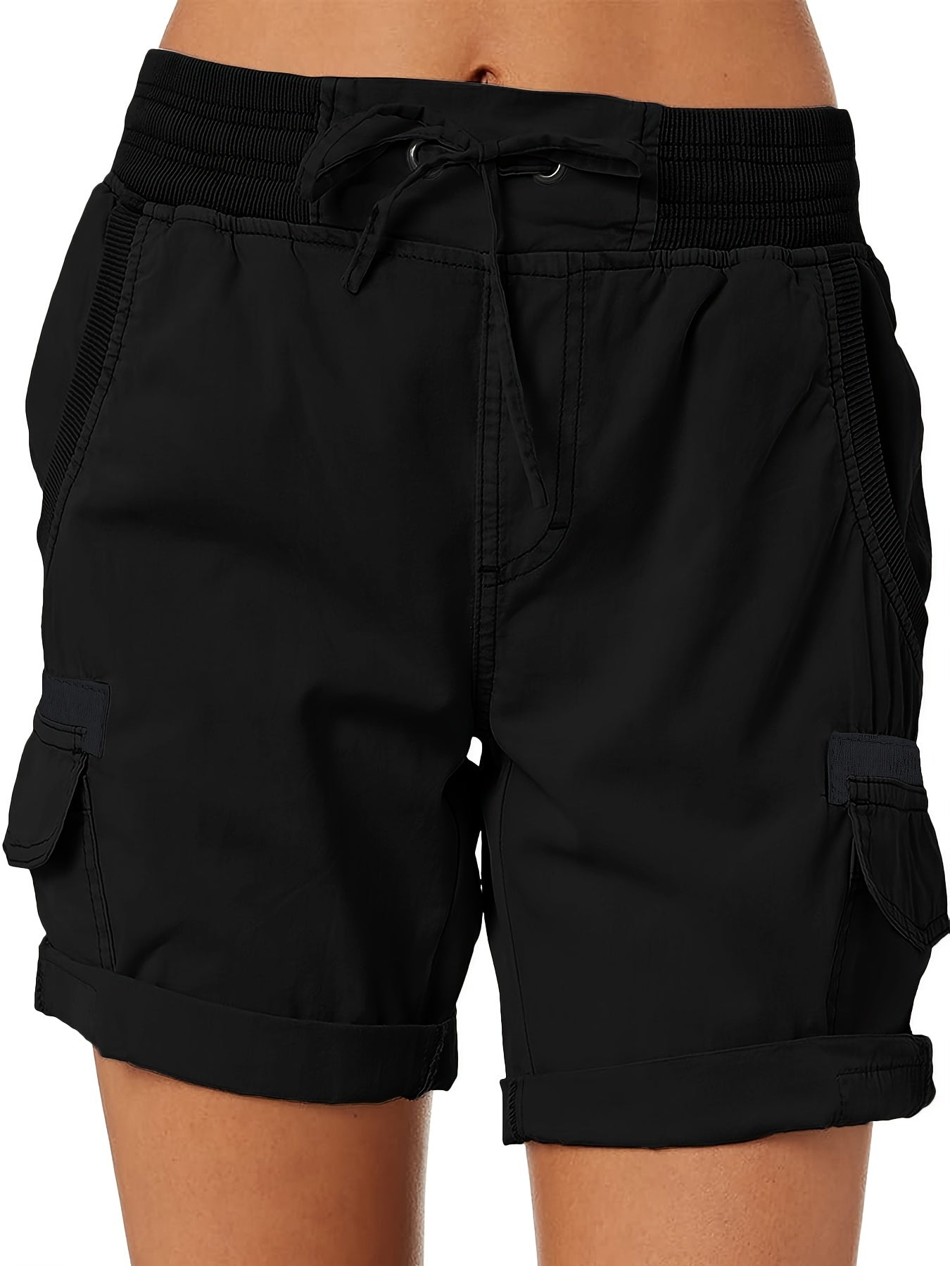 Praktisches und stilvolles Design: Die aufgesetzten Taschen bieten genügend Platz für Ihre Essentials, während der modische Schnitt und die umgeschlagenen Beinabschlüsse einen lässigen, trendigen Look verleihen. Diese Shorts sind vielseitig kombinierbar und passen perfekt zu jedem Sommeroutfit.
