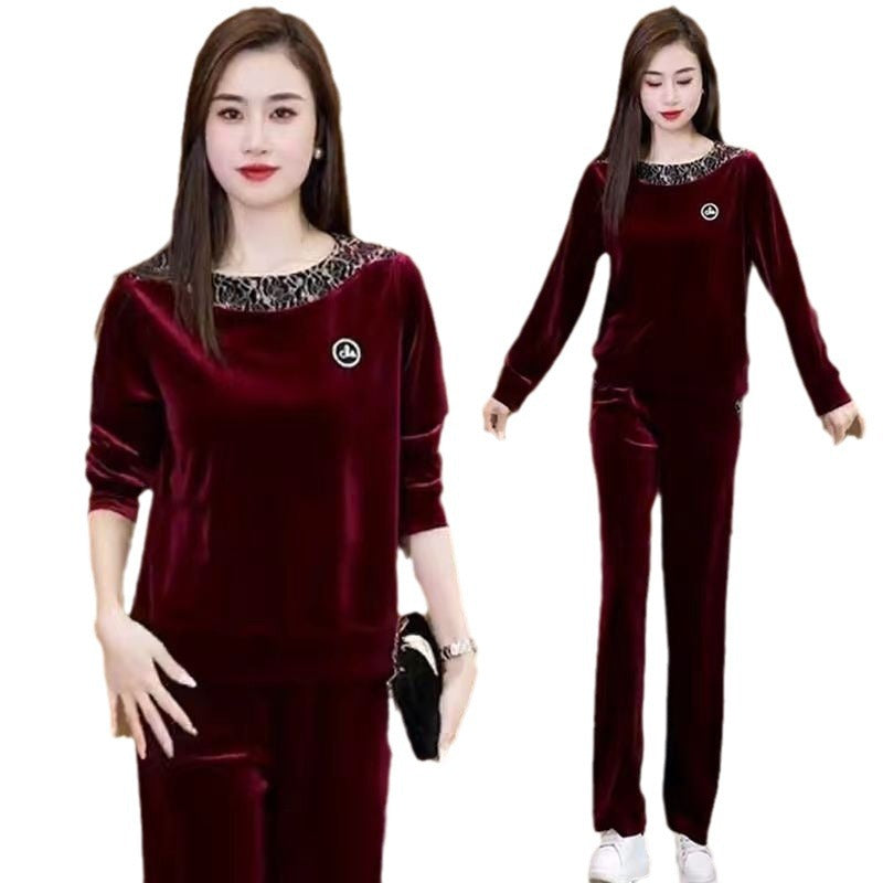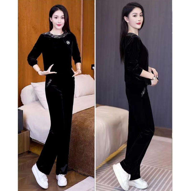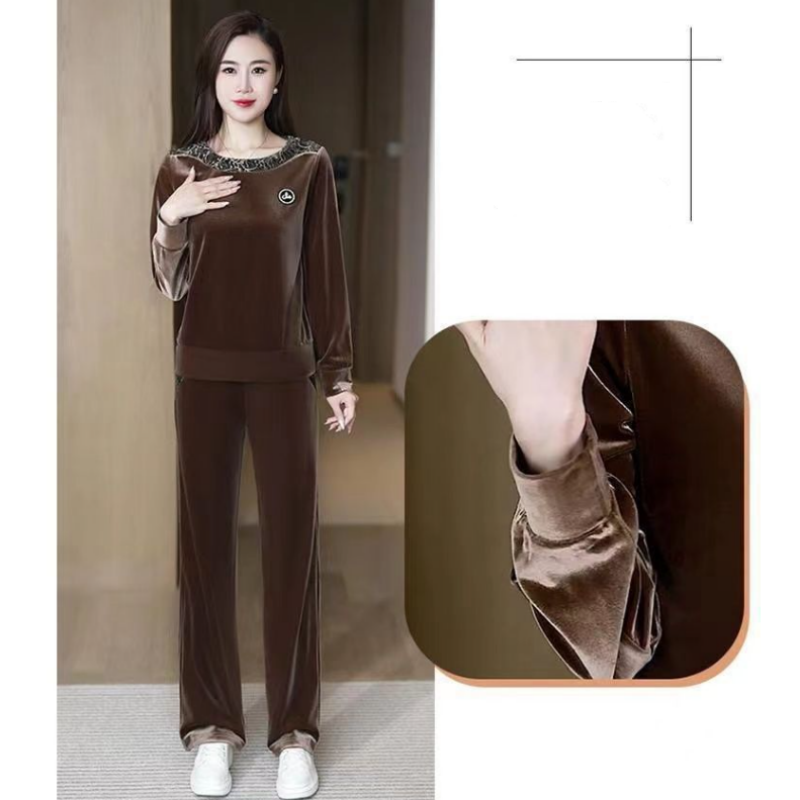 1 * Set mit langen Ärmeln und lässiger Hose für Frauen.