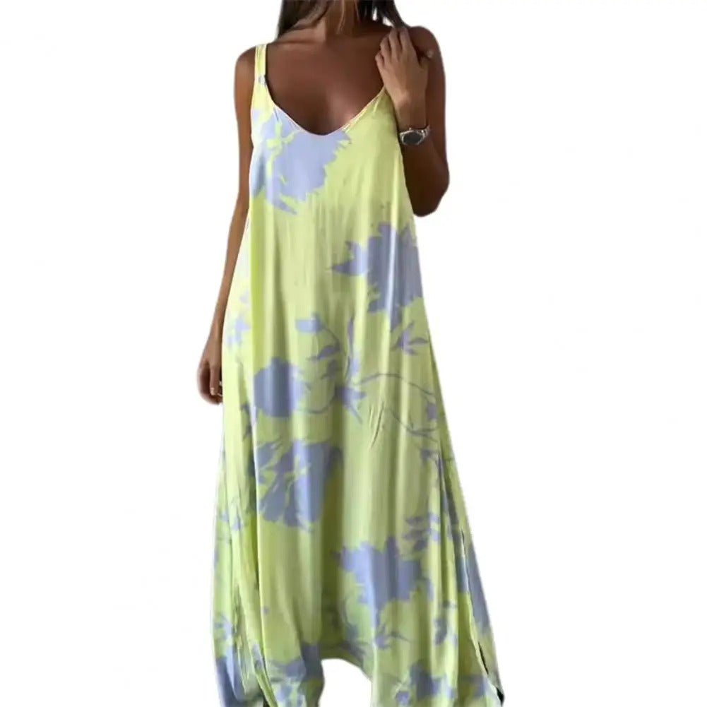 Mit seinen breiten Trägern und dem tiefen V-Ausschnitt bietet dieses Kleid nicht nur eine schmeichelhafte Silhouette, sondern auch höchsten Tragekomfort. Das großzügige, lockere Design sorgt für Bewegungsfreiheit und lässt Sie an heißen Tagen angenehm kühl bleiben. Ob am Strand, in der Stadt oder auf einer Sommerparty – dieses Kleid ist immer die richtige Wahl.