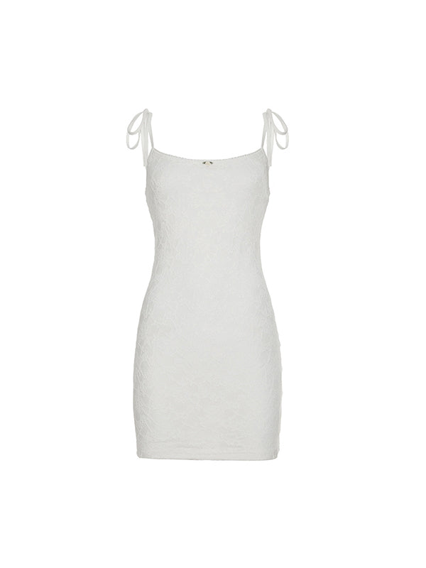 Weißes Vintage Spitzen Camisole Minikleid