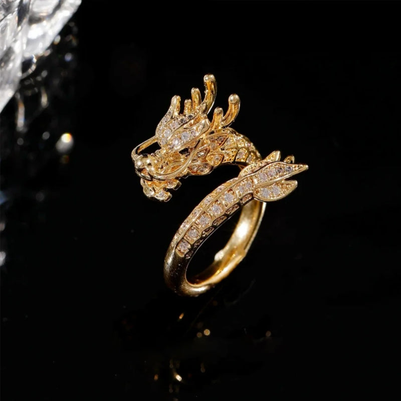 • 1 × Zarter, offener, verstellbarer Drachen-Glücksring mit Zirkonia