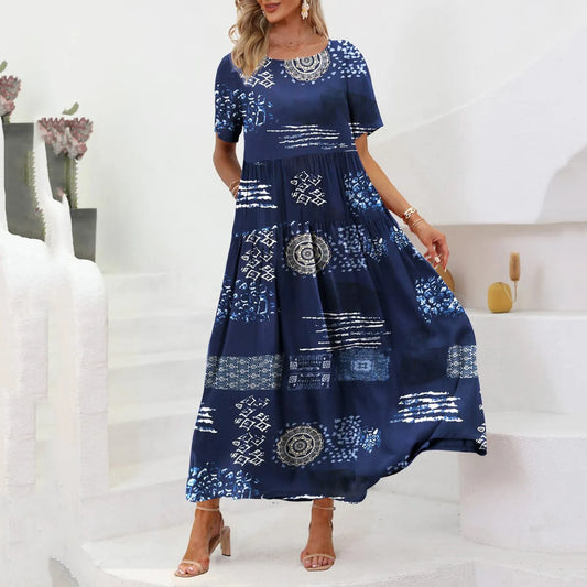 Eva - Vestido maxi confortável com estampa abstrata