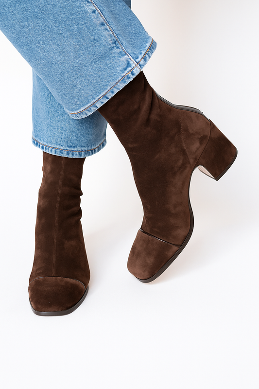 British style suede high-heeled low-top square toe boots