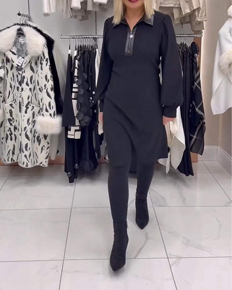 Kleid Reverskragen Puffärmel Halb-Reißverschluss