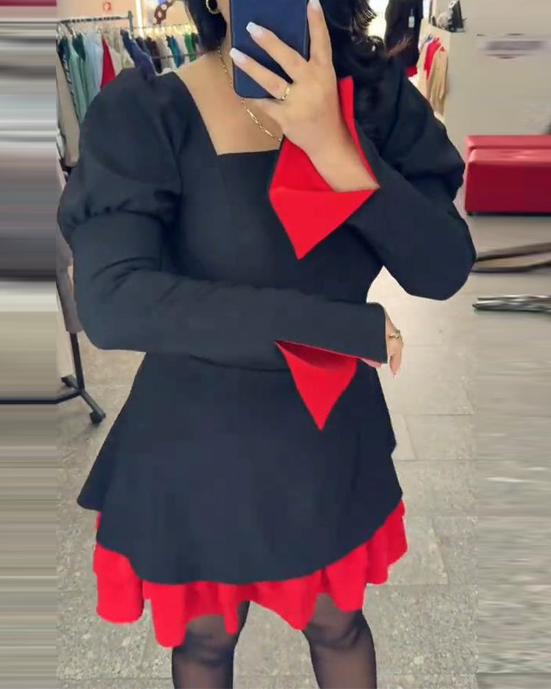Kleid Schlitz Glockenärmel Patchwork A-Saum