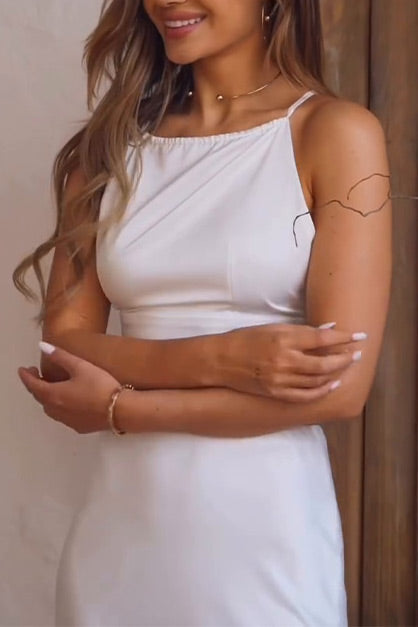 Elevate your wardrobe with this refined two-piece set featuring a sleek satin camisole top paired with a flowing hip maxi skirt. Crafted for both comfort and style, the satin fabric offers a smooth, lustrous finish that drapes elegantly. The camisole's minimalist design complements the maxi skirt’s flattering silhouette, making this set ideal for sophisticated daywear or evening occasions. Its versatile combination allows effortless mixing and matching, while ensuring a polished and graceful appearance.