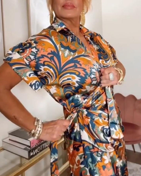 Elegant dress with tie knot and contrast print