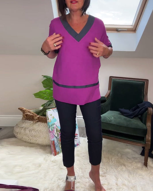 Casual V-neck color block print top