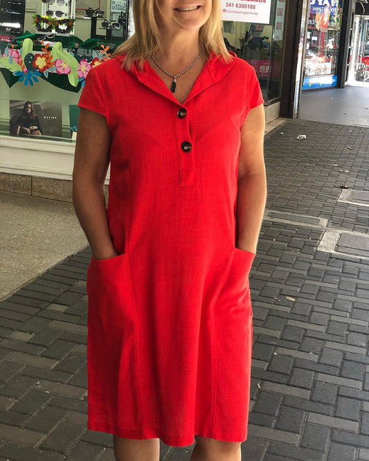 Casual, solid-coloured dress with hood and button placket