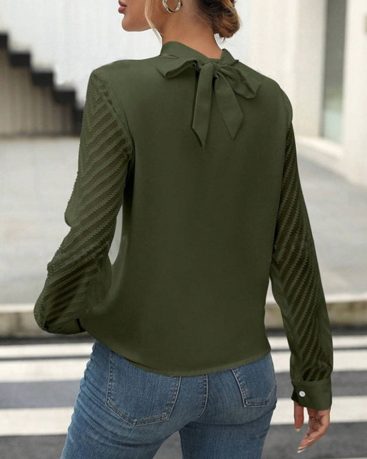 Fashionable, plain blouse with folds and long sleeves