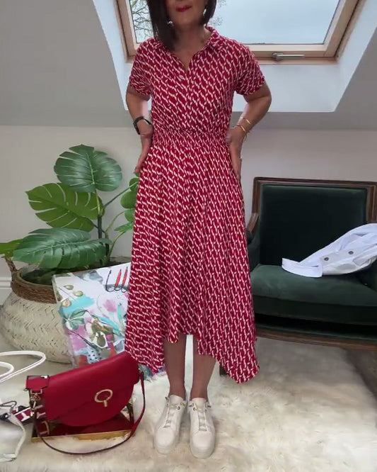 Printed dress with long sleeves and lapels