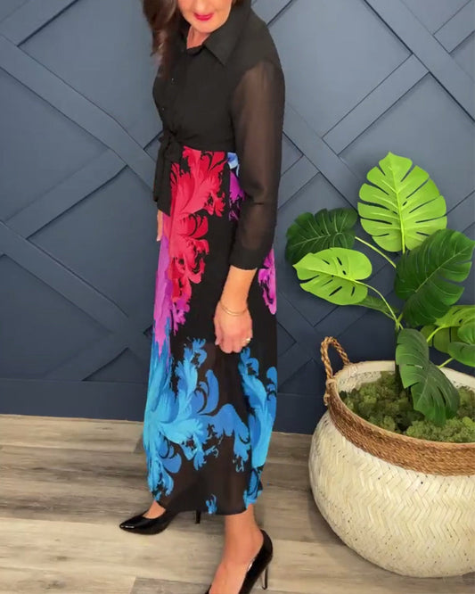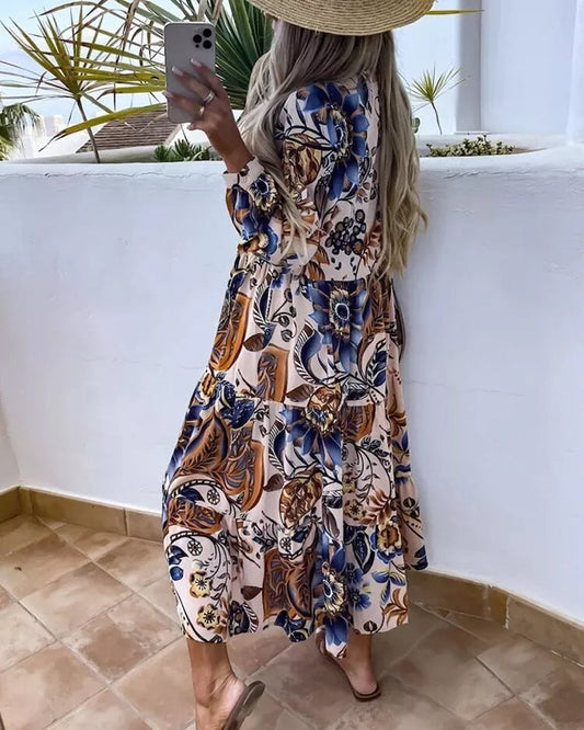 Long sleeve elegant printed dress