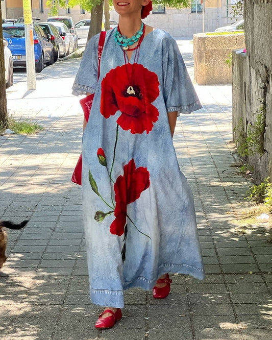 Casual loose floral V-neck dress