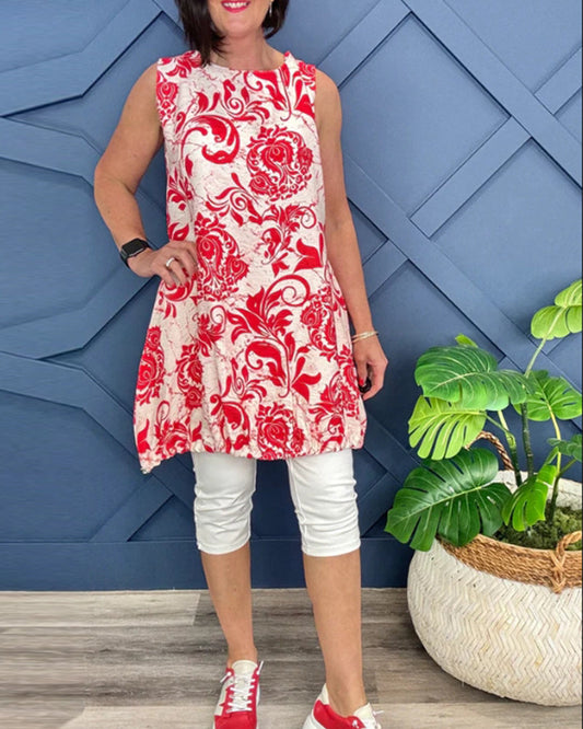 Casual printed sleeveless round neck blouse