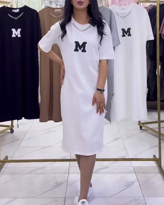 Simple casual dress with M-print