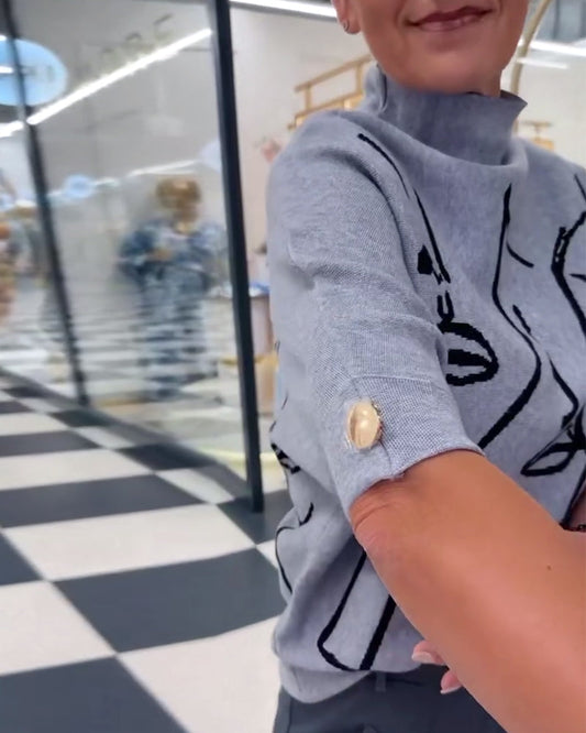 Turtleneck sweater with simple portrait pattern