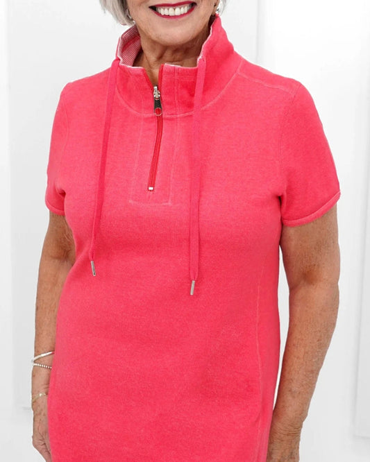Solid color dress with short sleeves and zipper