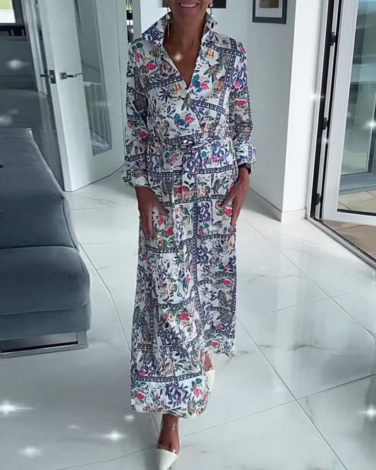 Casual floral dress with lapel and long sleeves