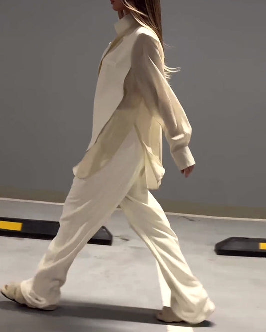 Plain temperament blouse with lapel