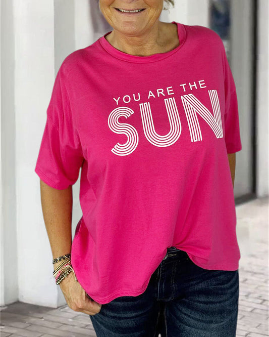 Casual loose t-shirt with round neck and short sleeves and letter print