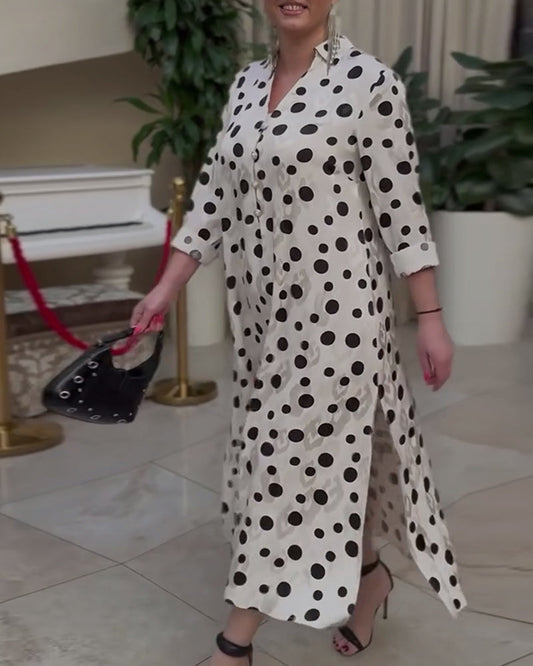 Casual dress with lapels and buttons in polka dot pattern