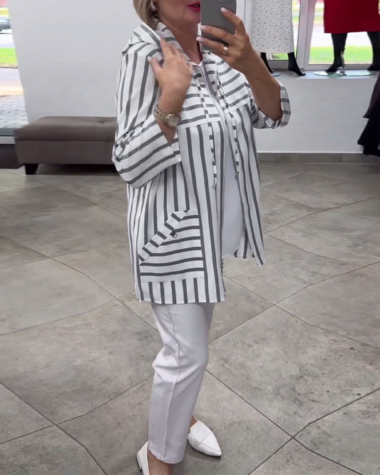 Casual coat with hood and striped pockets