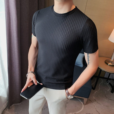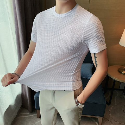 Our men's mesh ice silk short sleeve t-shirts are designed for both style and comfort . The classic short sleeve design and fitted cut ensure a sleek, confident style when worn. A variety of color options allow you to freely match according to personal preferences and occasions.