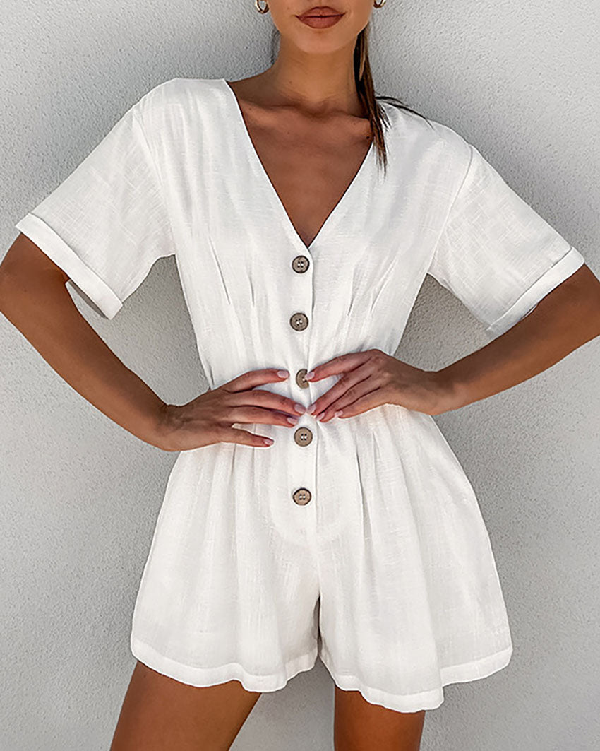 Dieser kurzärmelige Strampler aus hochwertiger, weicher Baumwolle ist sowohl bequem als auch stilvoll. Die Knopfdetails verleihen ihm einen Hauch von Eleganz und machen ihn perfekt für jeden Anlass. Bleiben Sie cool und modisch in diesem weißen Strampler, der perfekt für jede Jahreszeit ist.