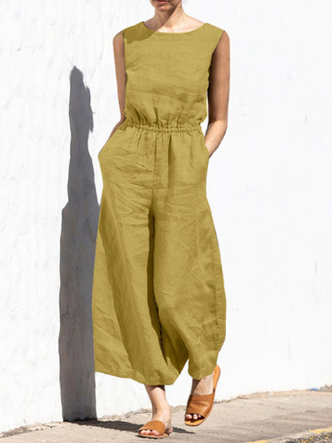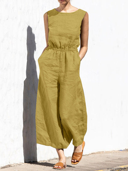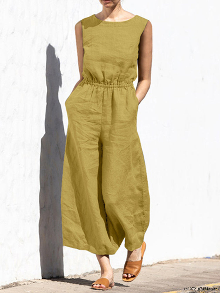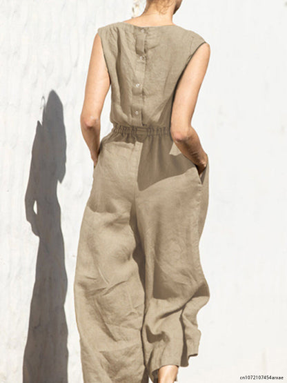 Lässiger Overall mit O-Ausschnitt aus Baumwolle und Leinen